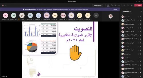 قام المشرف المالي المهندس سعد الزهراني بإدارة التصويت لميزانية 2020م والموازنة التقديرية لعام 2021 وتمت التصويت عليهما وإقرارهما.