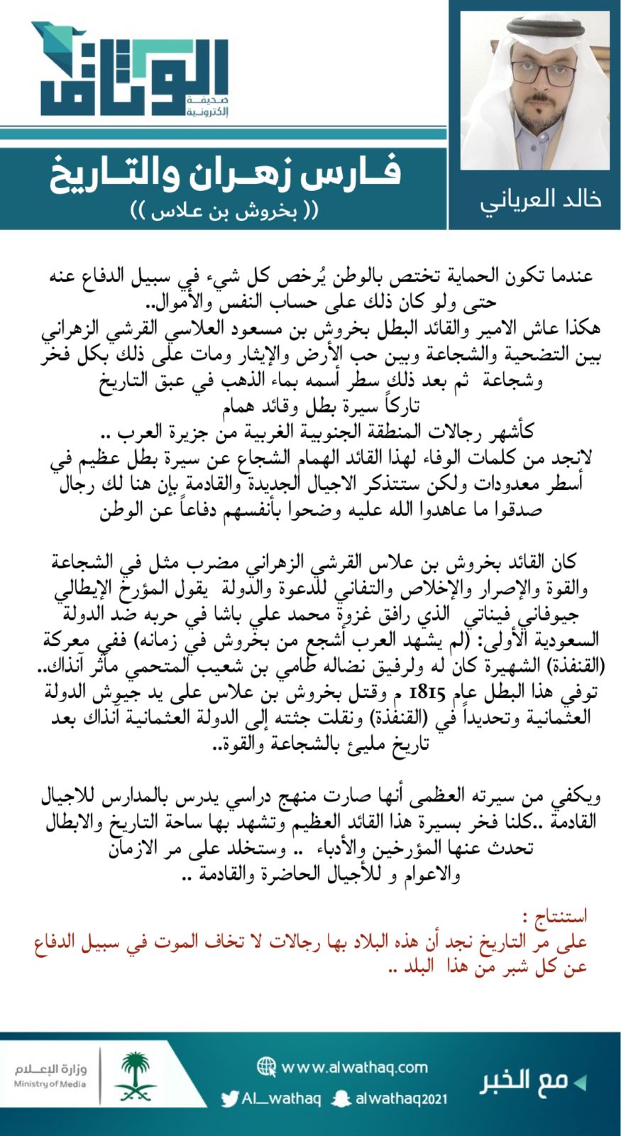 بقلم الكاتب : خالد العرياني