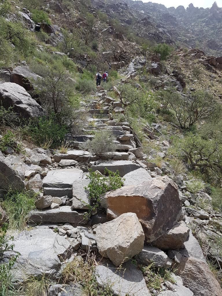 وحميدة تربطها بالسراة طريق قديمة مرصوفة ومبنية من حجار الجرانيت بطريقة هندسية فريدة من نوعها تدل على عزيمة الرجال ودقة التخطيط الهندسي والمعماري في تلك العصور لتربط محافظة بلجرشي بالمخواة أسفل تهامة وسميت هذه العقبة نسبة الى قرية حميدة التاريخية اسفلها ولم يعرف للعقبة تاريخ معين وقد شوهد على صخورها نقوش صخرية تعود الى الاف السنين و تمتد من شفا قرية المدان نزولا قرية حميدة كانت تعبرها قوافل الحجاج والتجار القادمين من الحبشة والسودان عبر مرفأ القنفذة ويوجد في منتصف الطريق صخرة كبيرة مجوفة تتسع لقرابة 20 رجلا برواحلهم ومتاعهم تسمى «غار الركبة » كما يطلق عليها الاهالي يخلدون فيها للراحة من عناء الطريق كما ان الطريق اختير بعناية فائقة كونه من اقصر الطرق الموصلة لتهامة اضافة الى سهولة منحدراته