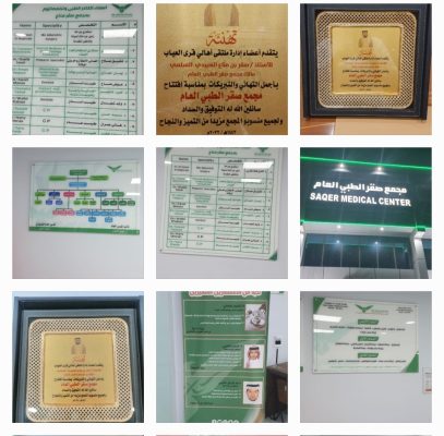 حيث كان في إستقبالهم بكل حفاوة وتقدير كلاً من : المهندس فيصل بن مناع العبيدي والأستاذ صقر بن مناع العبيدي المدير العام للمجمع والدكتور عوض بن مناع المدير الطبي للمجمع والأستاذ عاطف بن عليان العبيدي.