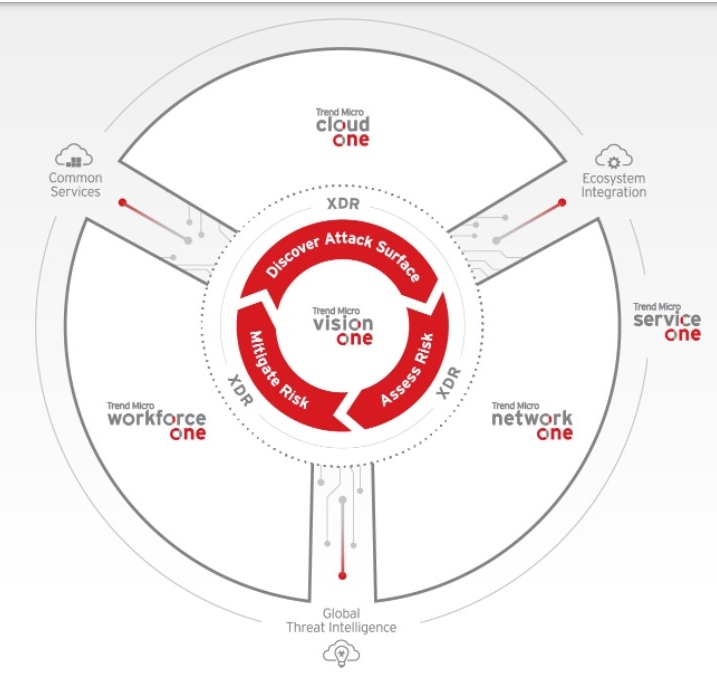 وتعمل Trend Micro One على تمكين العملاء من اكتشاف النقاط المستهدفة من مجرمي الانترنت عبر تعيين ومراقبة وتحديد خصائص الأصول الرقمية في بيئاتهم، فضلا عن فهم وتقييم المخاطر والثغرات الأمنية بشكل مستمر، وتشكيل الضوابط الأمنية، وتحديد أنواع الأنشطة الخطرة. كذلك تسعى Trend Micro One للتخفيف بشكل فعال من المخاطر عبر ضمان الضوابط الوقائية الصحيحة واتخاذ إجراءات سريعة للتقليل من المخاطر ومعالجة الهجمات من خلال الاستفادة من الاستخبارات الأمنية عن التهديدات.