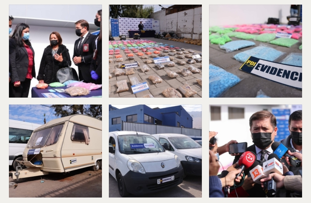 من جانبه، أوضح مسؤول مكافحة المخدرات والجريمة المنظمة بشرطة التحقيقات التشيلية في إيكيكي، رودريغو فوينتس، “أن وحداتها الميدانية وبالتعاون مع مصلحة جمارك الحدود عثرت على 474.342 ألف قرصاً لعقار الإكستاسى داخل سيارتين وكرفان بالإضافة إلى ضبط مواد أولية أخرى كافية لصنع حوالي مليون و 200 ألف جرعة من الإكستاسى المخدر.