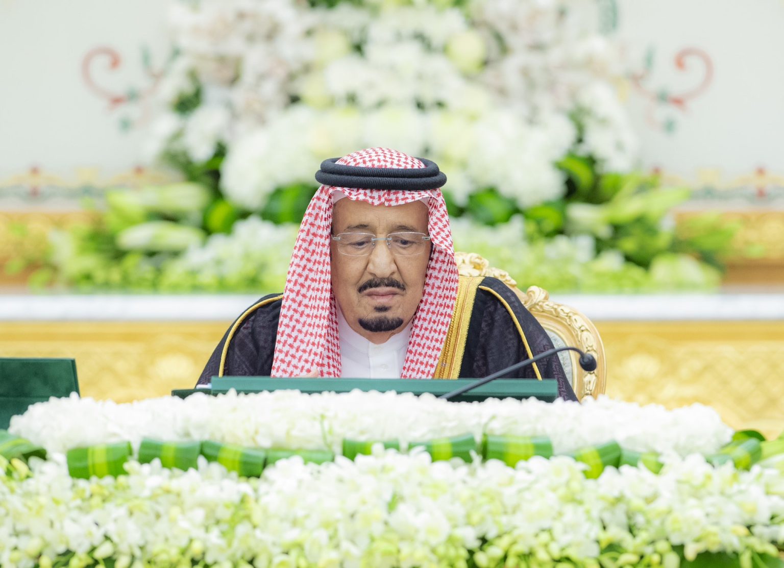 رأس خادم الحرمين الشريفين، الملك سلمان بن عبدالعزيز آل سعود ـ حفظه الله ـ، الجلسة التي عقدها مجلس الوزراء، اليوم، في قصر عرقة بالرياض.