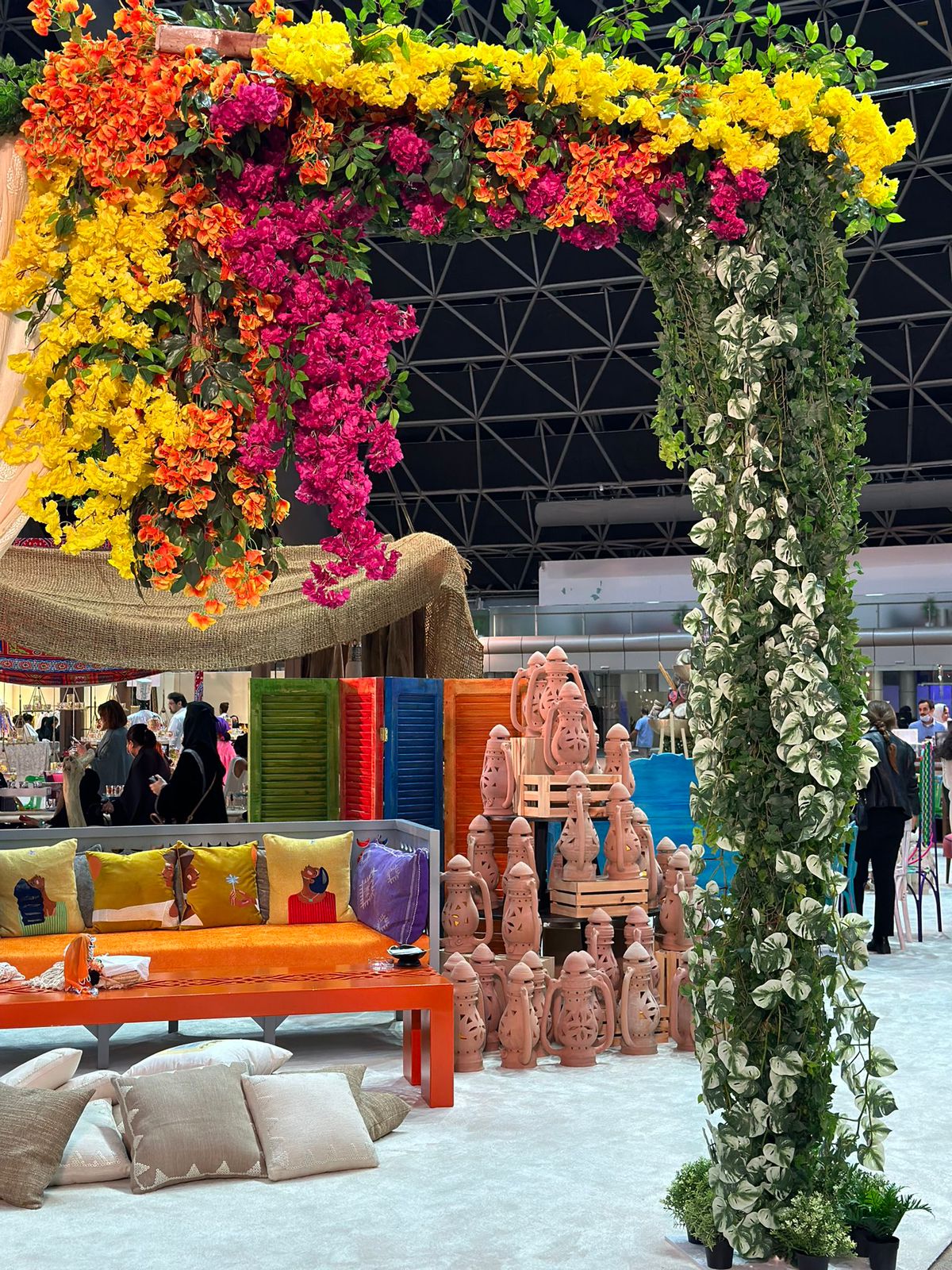 أكثر من 170 جناحاً وعارضاً شارك في هذه النسخة التي كسرت التقليد النمطي للمعارض، بعد أن توشّحت رداء الفن والتراث والأصالة الذي نسج خيوطه أبناء وبنات الوطن من المصممين الطموحين وهم يتبارون في إظهار مواهبهم للعالم والتعريف بطاقاتهم الإنتاجية من تصاميم وتحف فنية وأعمال تراثية تعكس تاريخ المملكة، كما ضم المعرض عروضاً لصناعات الأسر المنتجة من المملكة والخليج وجنسيات أخرى تنوعت ما بين إكسسوارات ومفروشات منزلية ومجوهرات وديكورات وأطعمة ومنتجات غذائية وأحدث خطوط الموضة والأزياء.