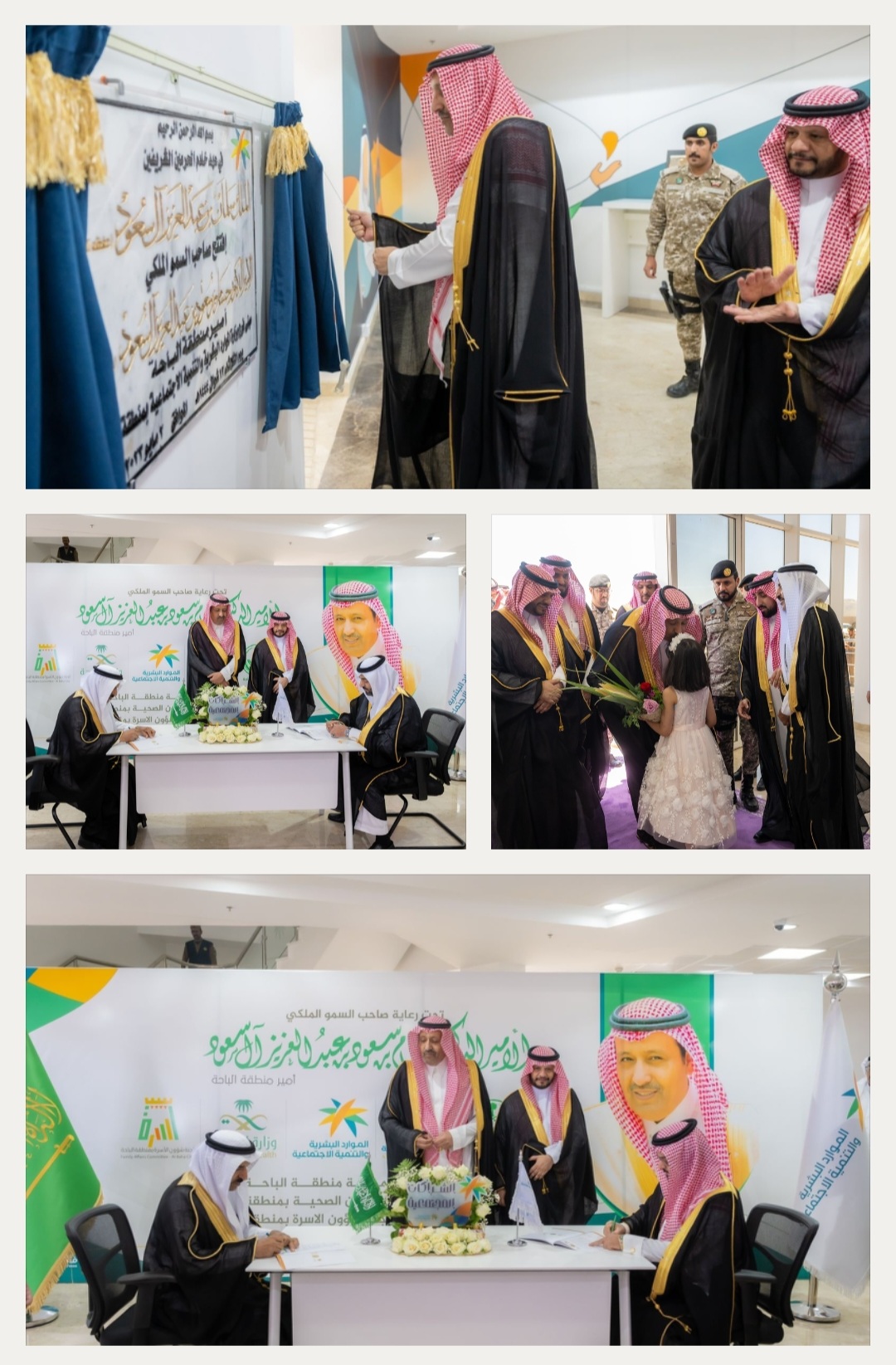وشهد سمو أمير منطقة الباحة في نهاية الجولة توقيع اتفاقية شراكة بين فرع وزارة الموارد البشرية والتنمية الاجتماعية, وأمانة الباحة, والمديرية العامة لشؤون الصحية بالمنطقة, ولجنة شؤون الأسرة بالمنطقة .