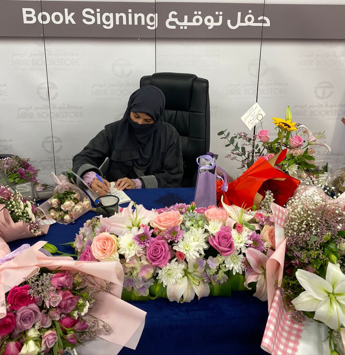 وشهد توقيع كتابها الذي دشنته في مكتبة جرير حضور كبير من مثقفي ومثقفات المجتمع ورواد القصة والآدب ووسائل الإعلام .
