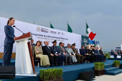 وقدمت رئيسة الجمهورية بيانات حول قطاع الطيران والفضاء في المكسيك، مشيرةً إلى أن بلادها تحتل المرتبة الخامسة عالمياً في جذب الاستثمارات الأجنبية في هذا القطاع، والثانية عشرة في تصدير مكوناته، مع توقعات بنمو حجمه إلى 22.7 مليار دولار في عام 2029، بمعدل سنوي يتجاوز 15 % وأضافت بأنه ولغاية النصف الأول من عام 2024، بلغ عدد الشركات العاملة في هذا القطاع 386 شركة موزعة على 19 ولاية، حيث تشغل نحو 370 منشأة صناعية، وتوفر أكثر من 50,000 وظيفة مباشرة و190,000 وظيفة غير مباشرة، مع معدل نمو سنوي في الصادرات بلغ 14%. وأكدت أن هذا المعرض يعد جزءا من “خطة المكسيك”، وهي خطة تنموية طويلة المدى تهدف إلى تعزيز الصناعة التحويلية والتوسع في الأسواق الدولية.