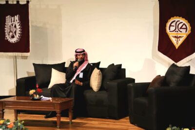 في إطار احتفالات كلية (La ESCA) – وحدة سانتو توماس، التابعة لمعهد بوليتكنيكو الوطني في المكسيك، بمناسبة مرور 180 عاماً على تأسيسها، شارك رئيس القسم الإعلامي بسفارة المملكة لدى المكسيك، والكاتب بالصحيفة، الأستاذ/ عبد الرحمن الحمد، في فعالية أكاديمية قدّم خلالها محاضرة حول تجربته الأكاديمية والدبلوماسية في المكسيك جاءت بعنوان: كنوز النجاح والتوازن بين العمل والدراسة.