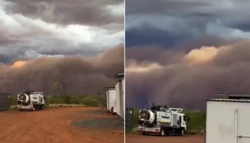 شهدت صحراء تانامي النائية في الإقليم الشمالي بأستراليا ظاهرة جوية غير مسبوقة، حيث اجتاحت المنطقة عاصفة ترابية عملاقة حولت الأفق إلى لون نحاسي داكن. وقد وثّق عمال أحد مواقع التعدين هذا المشهد الاستثنائي، إذ وجدوا أنفسهم يواجهون جداراً هائلاً من الغبار يتقدم نحوهم بإيقاع مقلق.