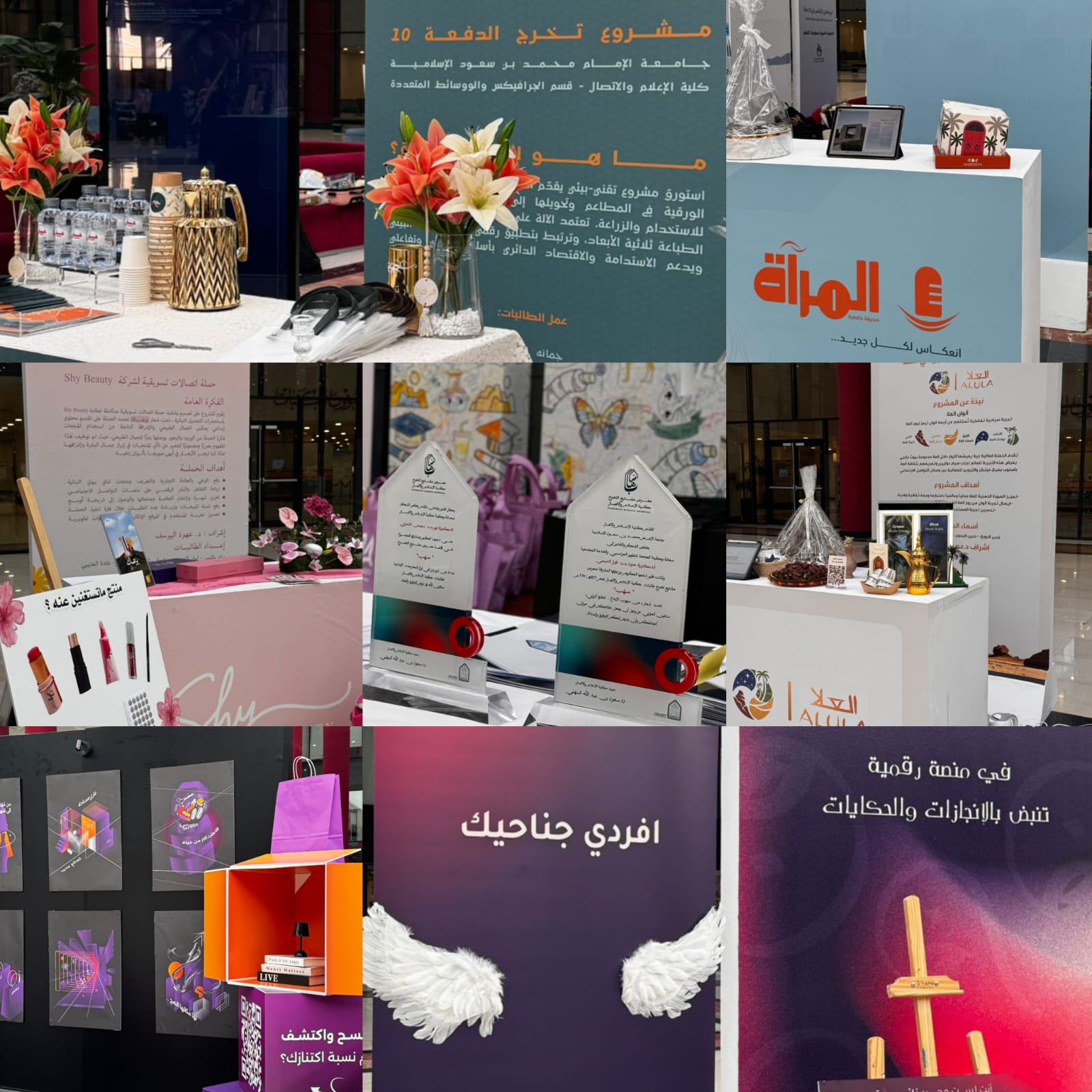 واشتمل المعرض على 23 مشروع تخرج لطالبات الكلية في تخصصات الإعلام المختلفة، حيث تنوّعت الأعمال بين الإنتاج الإعلامي، وصناعة المحتوى الرقمي، والاتصال المؤسسي، والإعلان، والعلاقات العامة، والإعلام الجديد، وتصميم الجرافيك والوسائط المتعددة بما يعكس وعيًا عميقًا بطبيعة السوق الإعلامي وتحولاته المتسارعة.
