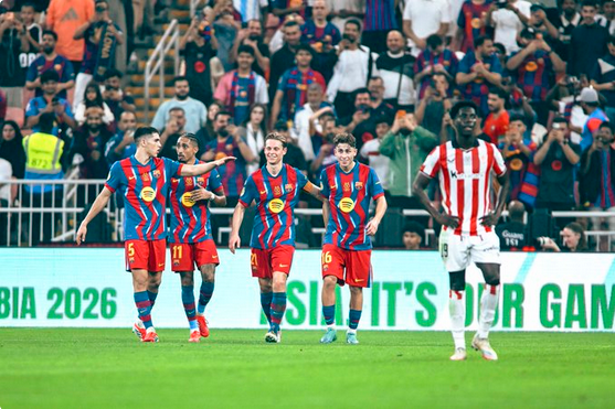 بأداء هجومي مبهر استحق معه التصفيق، حجز نادي برشلونة مقعده في المباراة النهائية لكأس السوبر الإسباني 2026، بعد أن أكرم وفادة منافسه أتلتيك بلباو بخمسة أهداف نظيفة. اللقاء الذي احتضنه ملعب “الإنماء” بمدينة الملك عبدالله الرياضية بجدة، شهد تفوقاً كتالونياً مطلقاً حسم الأمور منذ شوط المباراة الأول.